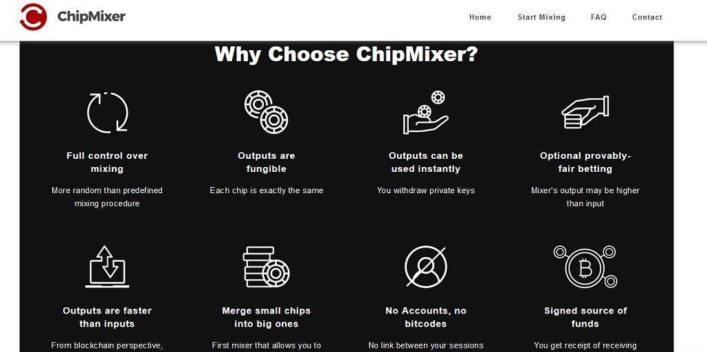Как это работает: вы делаете депозит на учетную запись пользователя рессурса, а система ChipMixer делит ее на мелкие части и распределяет их по разным кошелькам, смешивая их с монетами других людей или с монетами в резерве на платформе, получаете выплаты тоже порциями на свой кошелек, уже очищенные монеты. Этот процесс увеличивает анонимность вашей криптовалюты.