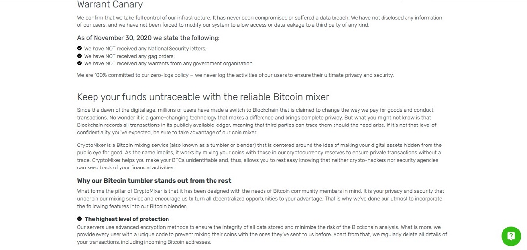 У Cryptomixer есть дополнительная функция (Auto-Cryptomixer), которая позволяет вам указать, с какими адресами будут смешиваться ваши монеты, когда они будут зачислены на ваш счет. Cryptomixer также применяет политику «без журнала», все журналы очищаются автоматически через 7 дней или клиентом сразу после завершения вывода.