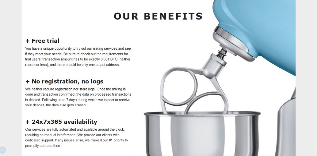Процесс очистки может занять не более 4 часов. Чтобы использовать микшер Cryptomixer в базовой версии Grams, вам необходимо создать учетную запись; в версиях Cryptomixer Light и Cryptomixer Market в этом нет необходимости. Если вы все же решите использовать версию Grams, вам придется заплатить вступительный взнос в размере 0,01 BTC.